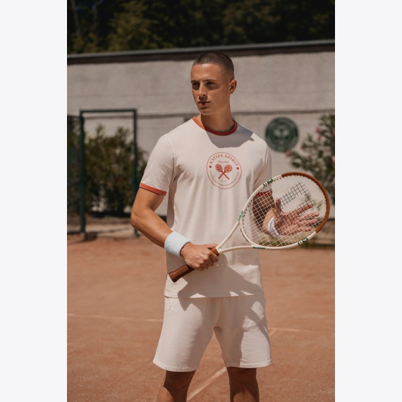 • Meeste T-särk, mille kehaosa on loodusvalge, kaeluse- ja varrukaotste kandid kontrastset värvi