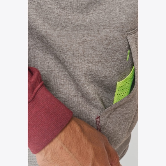 kängurutasku sees eraldi võrkmaterjalist tasku mobillitelefoni jaoks